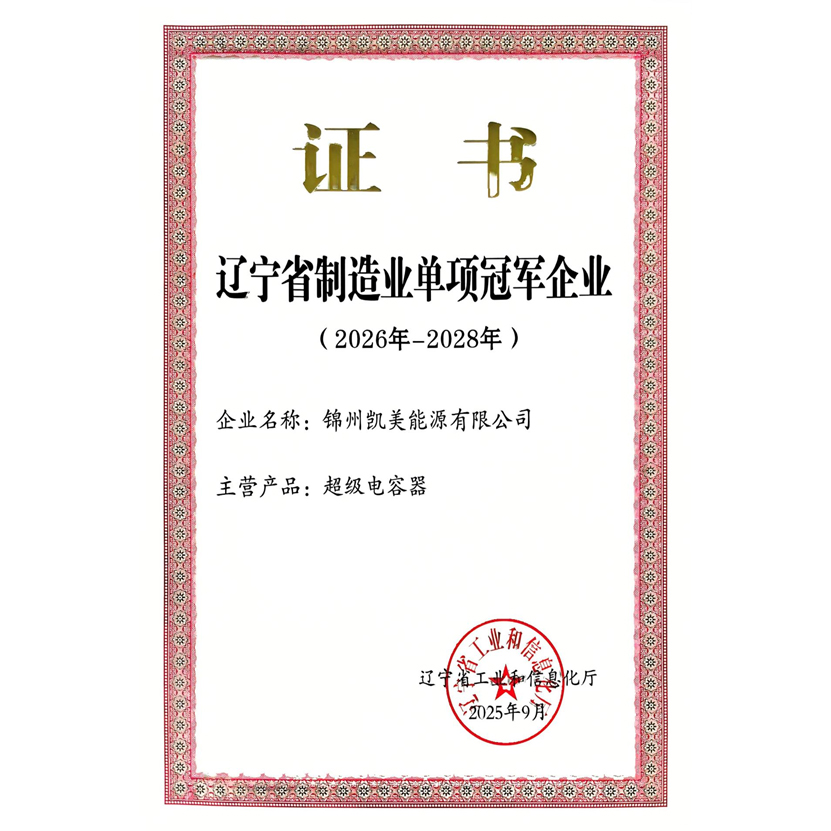 錦州凱美能源有限公司再次榮獲"遼寧省制造業(yè)單項冠軍企業(yè)"稱號,實現(xiàn)連續(xù)獲評。這是公司在超級電容器領域深耕近20年、繼國家級專精特新"小巨人"等榮譽后,獲得的又一省級權(quán)威認可,充分彰顯了公司在細分市場的領先地位和核心競爭力。