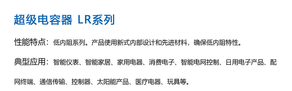 性能特點:低內(nèi)阻系列。產(chǎn)品使用新式內(nèi)部設計和先進材料,確保低內(nèi)阻特性.典型應用:智能儀表、智能家居、家用電器、消費電子、智能電網(wǎng)控制、日用電子產(chǎn)品、配網(wǎng)終端、通信傳輸、控制器、太陽能產(chǎn)品、醫(yī)療電器、玩具等。